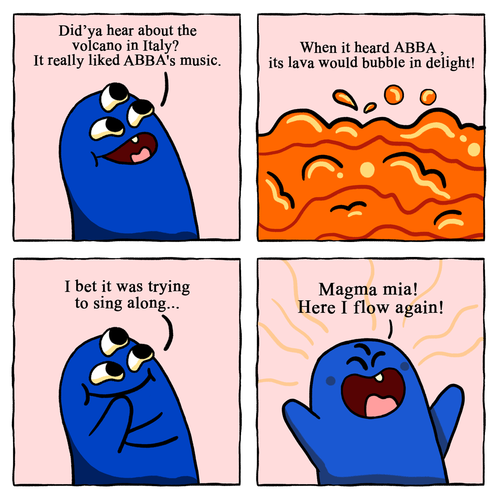 Arts and Music Comics Other Fun StuffMagma adminyubMay 23, 2025May 23, 2025 Yub’s Musical Magma Fact Week 77: Yub has just discovered what magma is! Related posts: Echo Brains or Beauty Complicated Crustaceans Rooster’s Crow
